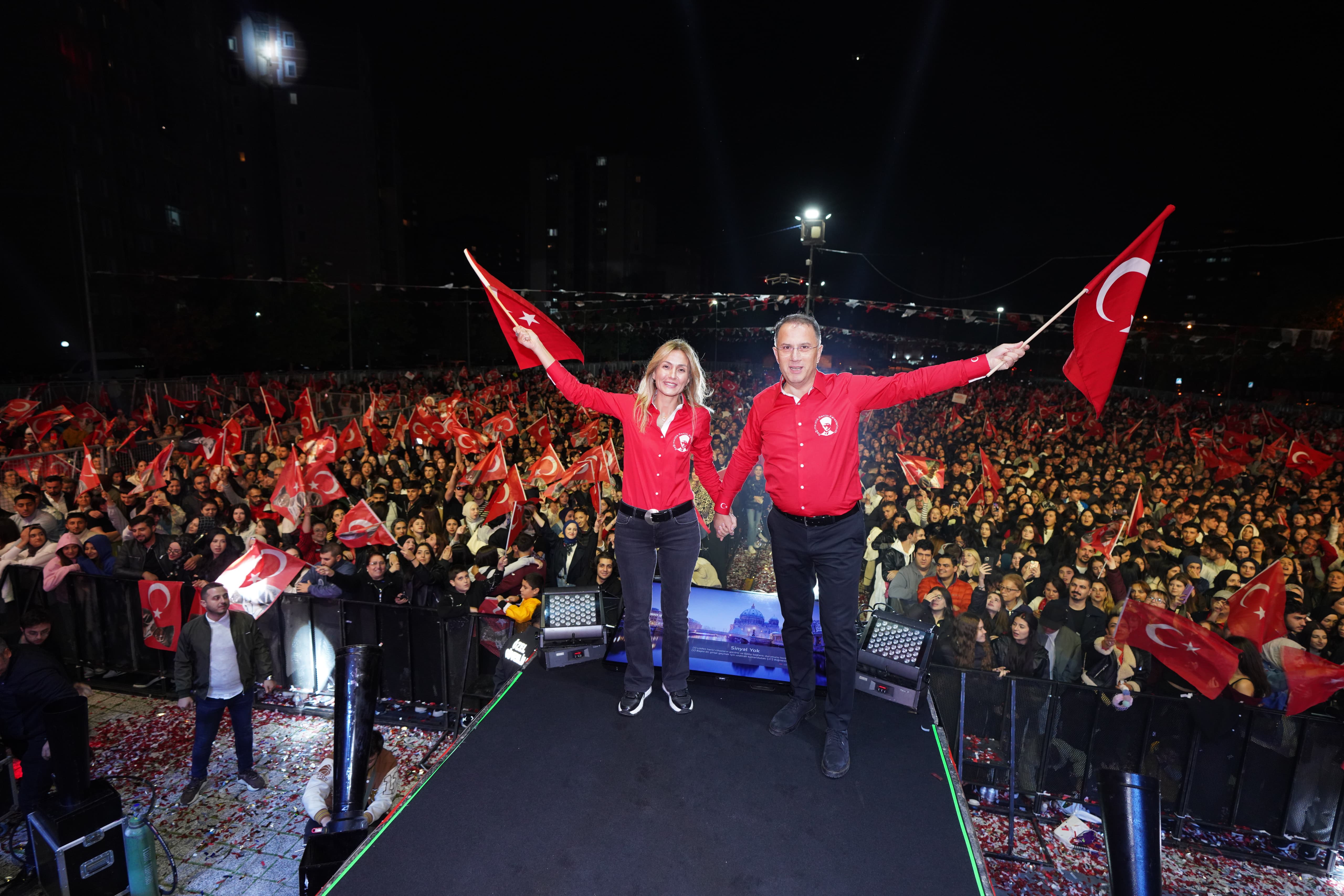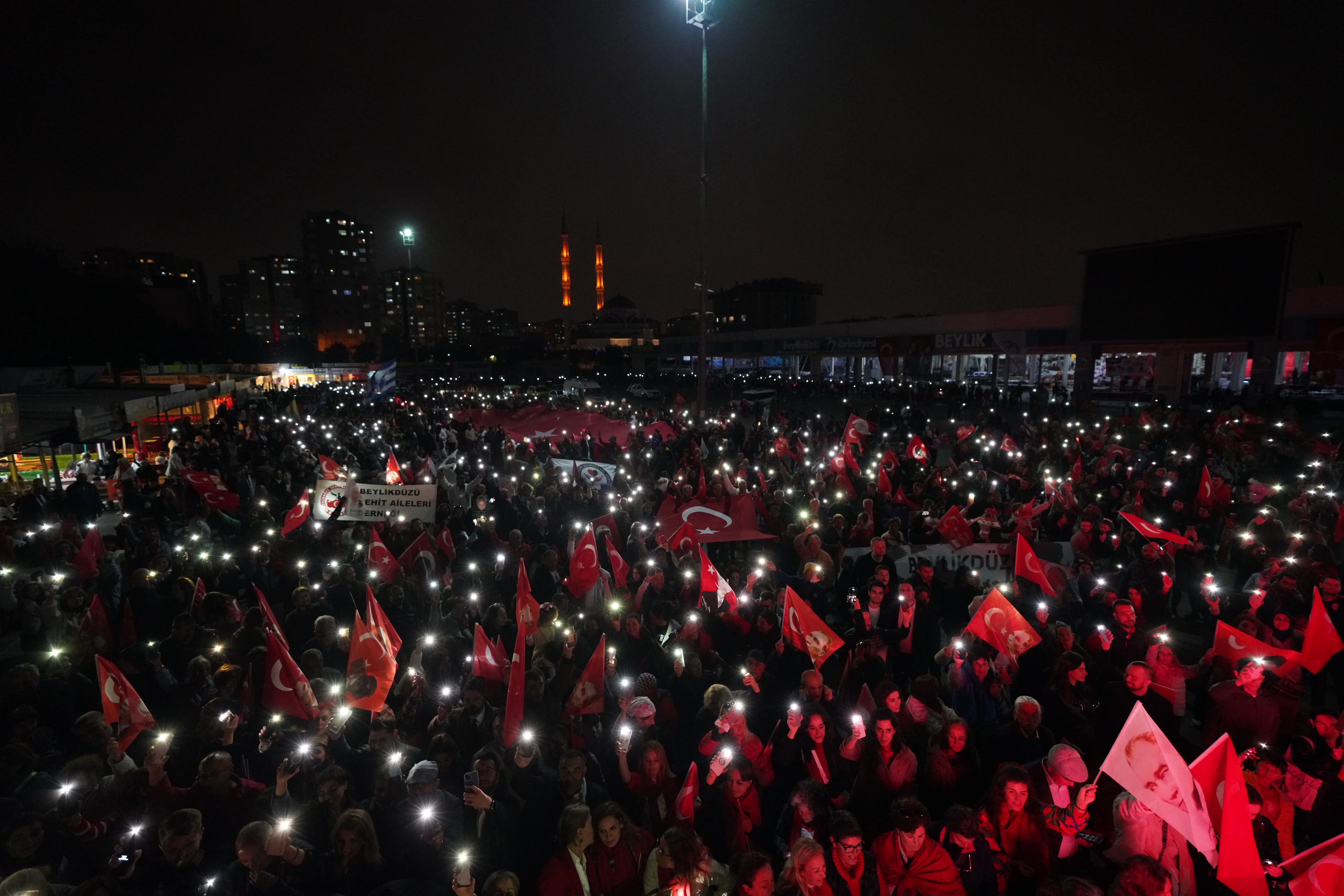 Başkan Çalık, konuşmasının devamında ise Cumhuriyet’in Atatürk ve silah arkadaşlarının büyük fedakarlıklarıyla kurulduğunu belirterek, bu mirasa sahip çıkacaklarına dair güçlü bir söz vererek, “Cumhuriyet, 19 Mayıs 1919’da Samsun’da yakılan bir kıvılcımla başladı. O kıvılcım, kadın ve erkeğin eşit olduğu, bilimin yol gösterdiği, bağımsız bir Türkiye’nin temelini attı. Bugün burada, Cumhuriyet’in değerlerini yaşatacağımıza söz veriyoruz! Ne yaparlarsa yapsınlar, Bu milletin direnci, sabrı ve cesareti asla tükenmeyecek! Çünkü biz, zorluklardan yılmayan, düştüğünde daha da güçlenerek ayağa kalkan ve asla pes etmeyen bir milletiz! Bir çift mavi gözün ışığında, Cumhuriyet var oldukça, bu topraklarda umut her daim var olacaktır! Çünkü Cumhuriyet, milletine inanan bir liderin, milletiyle birlikte yedi düvele meydan okuması sayesinde kazanılmıştır” ifadelerini kullandı.